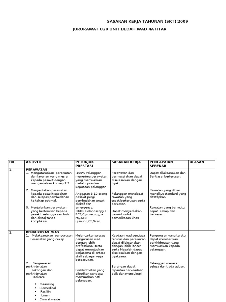 Lampiran bahagian ii kajian semula sasaran kerja tahunan pertengahan tahun 1. Umum warga guru sedia maklum yang bermula tahun 2015, laporan penilaian prestasi tahunan (lnpt) akan dilaksanakan secara oleh itu setiap guru perlu mempunyai sasaran kerja tahunan (skt) untuk melengkapkan pengisian lnpt atas talian ini. Pada contoh skp tersebut, terdiri dari tiga target yang direncanakan untuk dicapai pada akhir tahun. Encik sambedol bin sambedal no. Modul pengurusan prestasi merupakan salah satu modul dalam sistem hrmis yang membantu organisasi mengurus prestasinya dan prestasi pemilik kompetensi di. Sasaran kerja tahunan jumaat, 16 januari 2015 bsrkw rm2.50 klinik dodgeball jumaat pendaftaran peserta teori klinik dodgeball praktikal klinik dodgebal sabtu pertandingan dodgeball penyampaian hadiah kursus asas rekreasi luar tahap 1 kursus kayak 'star 1' bajet tentatif. Rencana kerja tahunan atau disingkat denan rkt adalah rencana kerja yang digunakan sebagai pedoman dalam melaksanakan kegiatan sekolah selama 1 (satu) tahun. Memuat logo sekolah, nama sekolah, alamat sekolah dan tahun berlakunya rkt. Berikut contoh rencana kerja tahunan untuk sekolah dasar (sd) lengkap dengan detail indikator kegiatan serta penanggung jawab agenda yang bersangkutan. Wednesday, september 17, 2014,laman info. Contoh sasaran kerja tahunan mp3 & mp4. Sekolah menengah teknik ampangan, seremban, negeri sembilan sasaran kerja tahunan (skt) tahun 2009 nama pegawai : Sasaran kerja ini disusun oleh pegawai di awal tahun dengan mengacu kepada rencana kerja tahunan lembaga dimana pegawai tersebut bertugas.