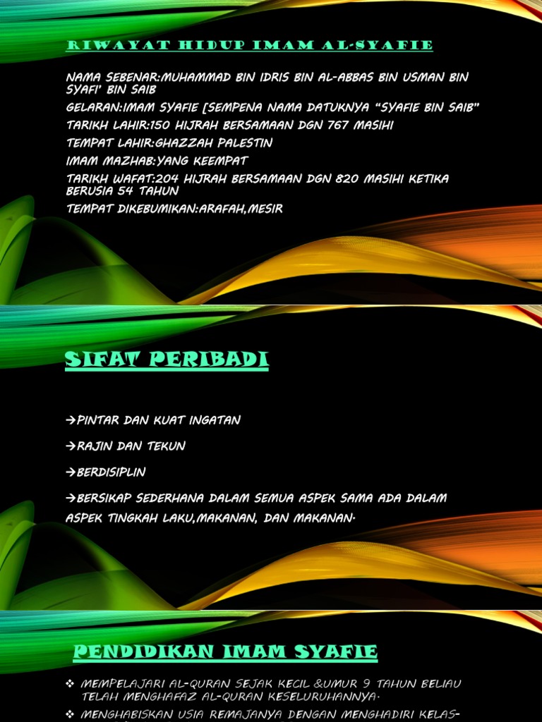 Imam Syafie By Syahirah Sofian from 0901.static.prezi.com Sebenarnya ketika tuanku menanyakan hal tersebut kepadaku, aku tidak mempunyai jawabannya. Jangan keliru, inilah sunah malam jumat yang sebenarnya !! Nama imam syafi'i merupakan nama pemberian dari orang tuanya. Imam syafii awalnya belajar membaca, menulis, dan menghafal alquran. Para pemimpin dan ulama juga tidak lepas dari kata bijak. Nama sebenarnya nu'man putra dari tsabit bin zautho bin mah, keturunan bangsa ajam. Selain ilmunya luas & dlm, amal ibadahnya juga luar biasa. Imam syafii kemudian merumuskan aliran atau mazhabnya sendiri, yang dapat dikatakan berada di antara kedua kelompok tersebut.